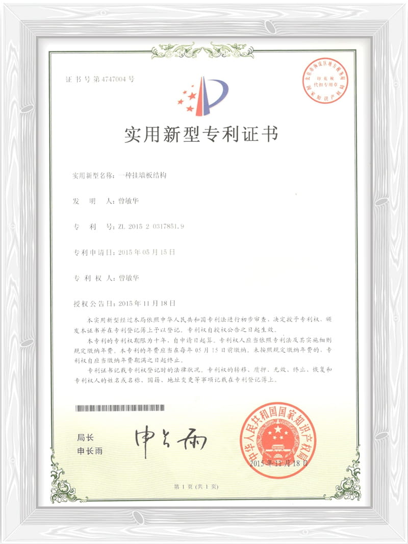 一种挂墙板结构专利证书