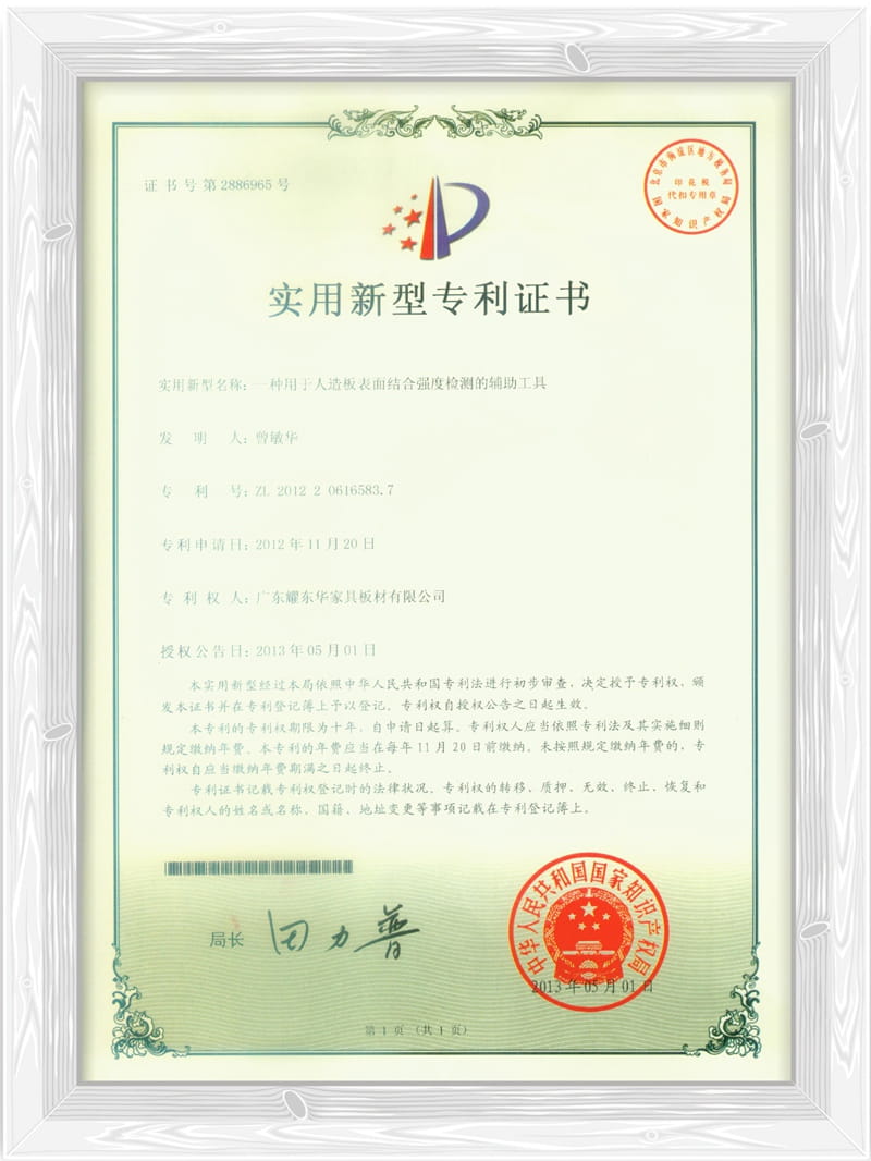 一种用于人造板表面结合强度检测的辅助工具专利证书