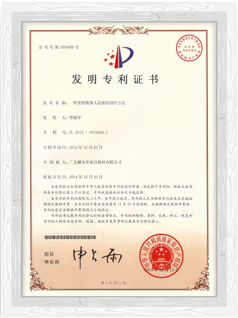 一种重组装饰人造板的制作方法专利证书