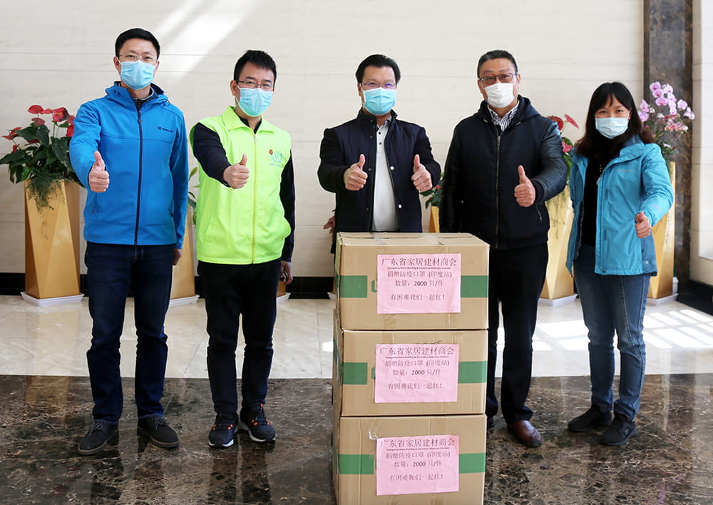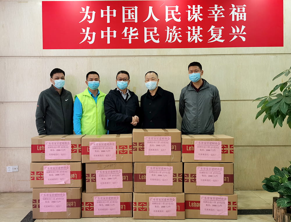 2020年春节期间,武汉新肺疫情爆发,防疫医疗物资紧缺,全国各行业纷纷施以援手。广东省家居建材商会在商会会长曹宇勇、党支部书记林绍武、监事长黄旭光等决策委员会的领导和组织下,自2020年1月28日起,发动广大会员单位,联合全球多方力量,筹集防疫物资,支援这场抗灾战役。