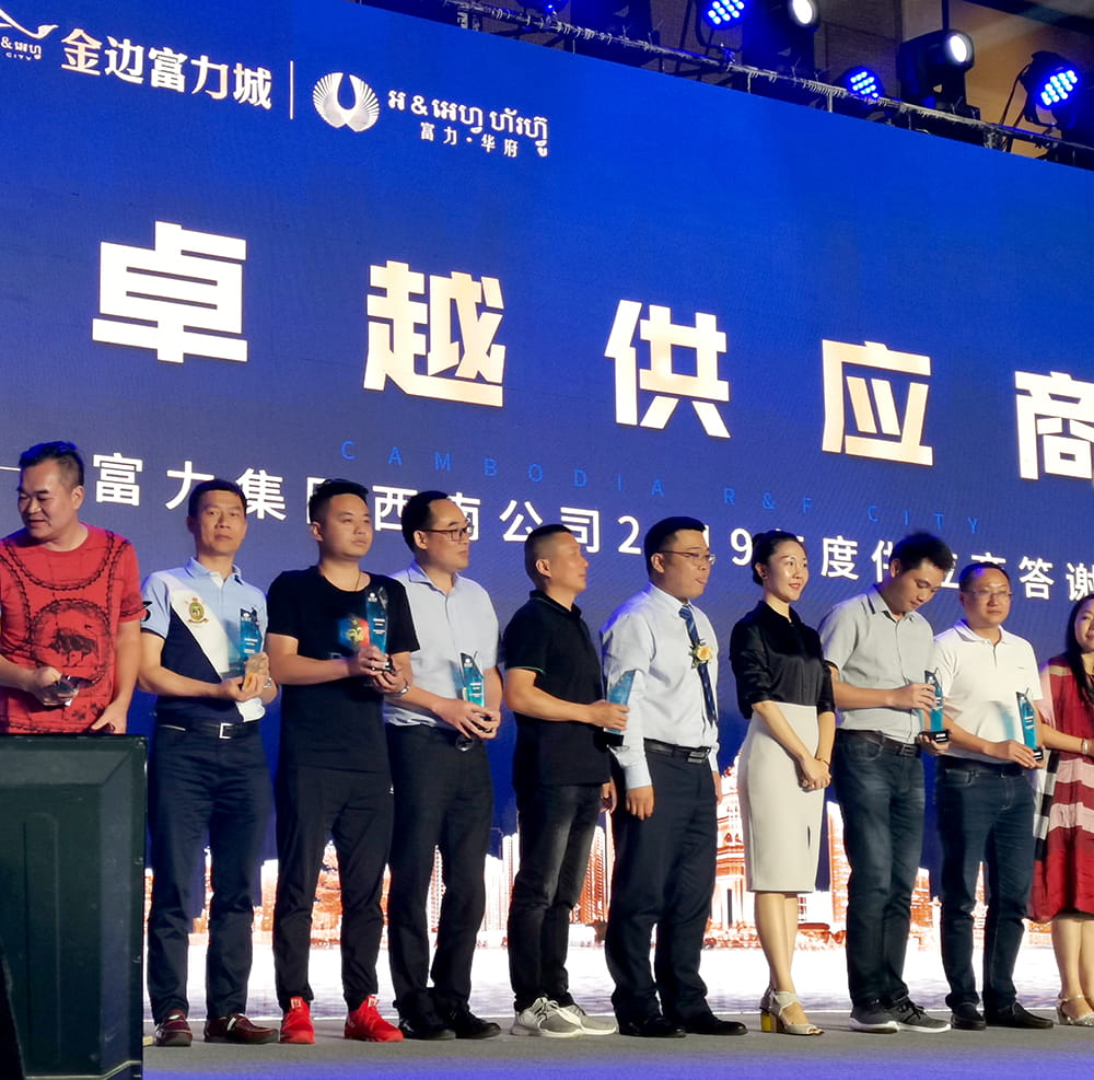 2019年6月21日,由广州富力集团主办的以“同心同力,遇柬未来”为主题的2019年度供应商答谢会在重庆举行,3377在线公司“红棉花板材”凭借其高质量的产品、优质的客户服务及强大的市场竞争力,从市场上众多品牌中脱颖而出,荣获“富力集团2019年度卓越供应商”称号!